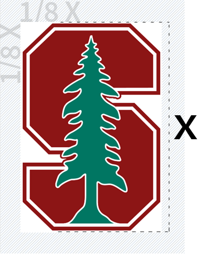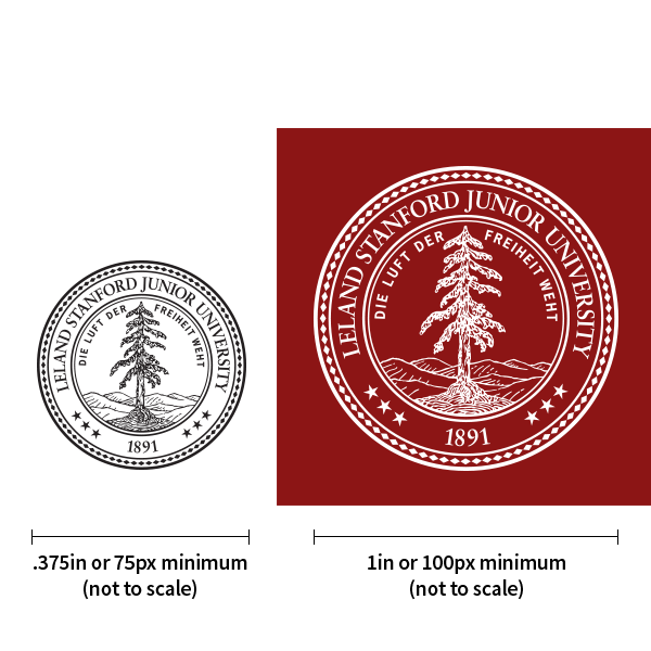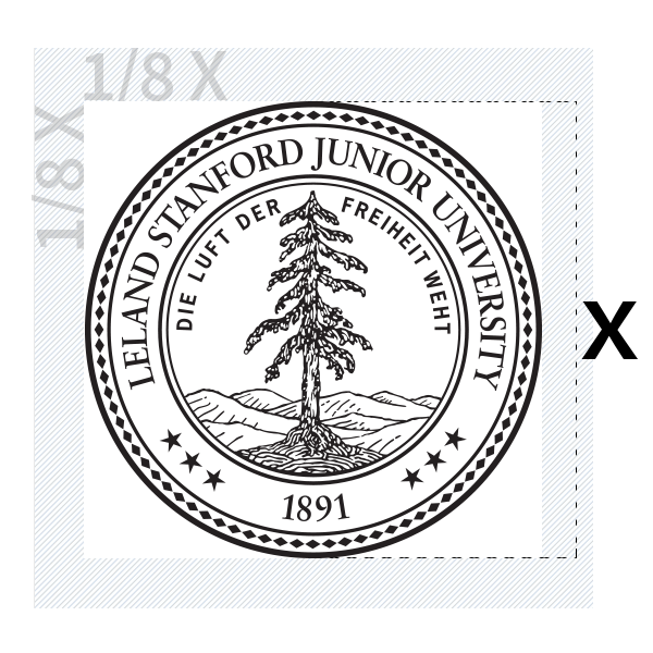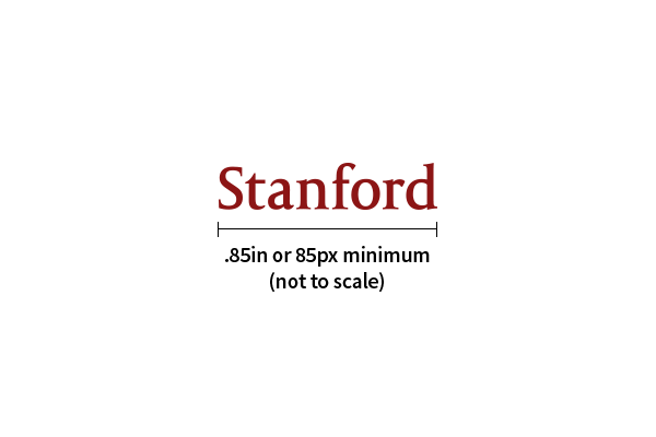 There should always be a buffer zone surrounding the signature or wordmark, with no type or graphics appearing in the zone. At a minimum, the space should be equal to the x-height of “Stanford” at any given size and extend above, below, to the left and to the right of the signature or wordmark. This applies to all signature and wordmark variations. Do not place other graphics or typography in the minimum clear space area, except for trademark designations when appropriate.